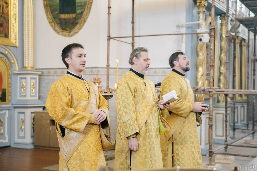 Его Высокопреосвященству сослужили духовенство Новогрудской епархии и братия монастыря в священном сане. Диаконский чин возглавил протодиакон Георгий Пшенко, который по запричастном стихе также произнес проповедь.