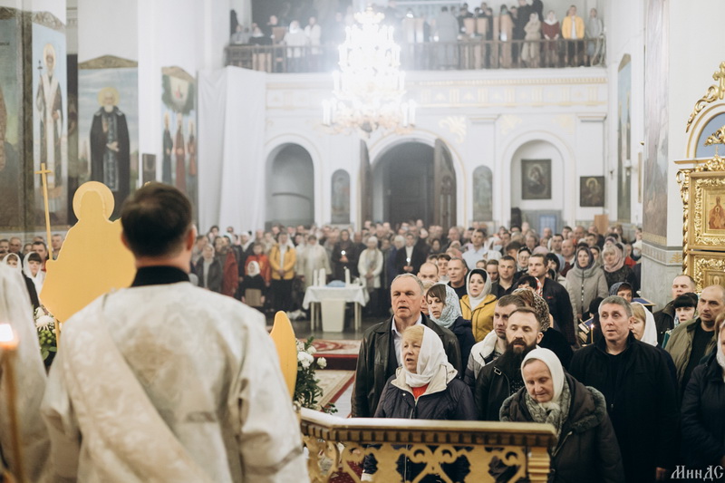 Его Высокопреосвященству сослужили преподаватели Минской Духовной семинарии и братия обители в священном сане.
