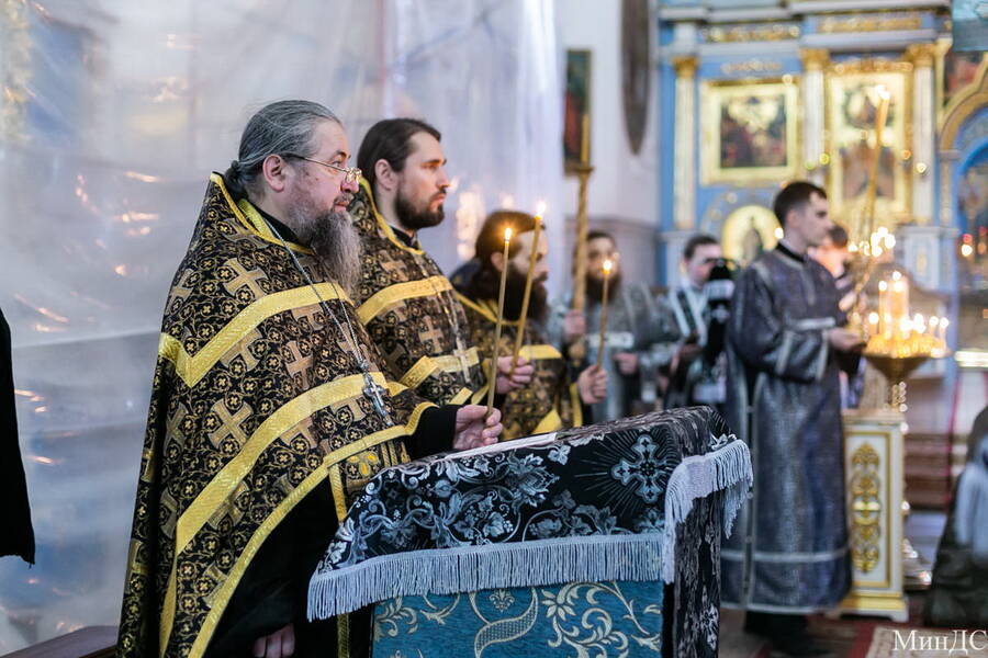 За богослужением молились преподаватели, сотрудники и студенты семинарии, монашествующие и миряне. Песнопения Пассии исполнил мужской хор Минской духовной семинарии под управлением протодиакона Андрея Скробота.