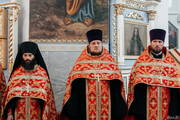 Его Высокопреосвященству сослужили братия обители в священном сане и духовенство Новогрудской епархии. Диаконский чин возглавил протодиакон Георгий Пшенко.
