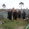 Священник прихожане на уборке кладбища