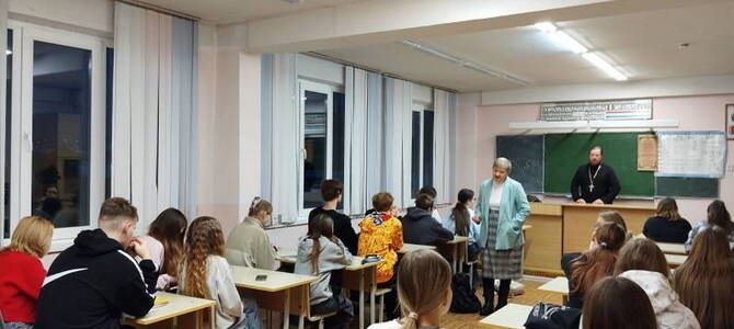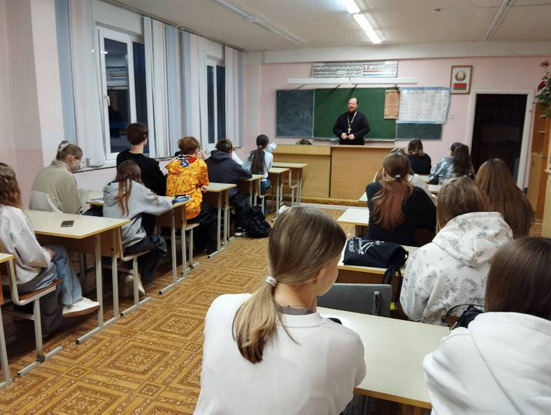 25 ноября настоятель храма святых благоверных князей Бориса и Глеба г. Новогрудка протоиерей Николай Косяк беседовал с учащимися 1 курса Новогрудского государственного колледжа.