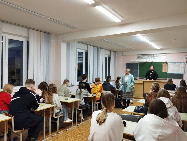 Священник говорил с молодежью на тему: «10 Заповедей Божиих». Он объяснил значение каждой заповеди, подчеркнул их актуальность в современной жизни и призвал молодых людей следовать им в повседневности.