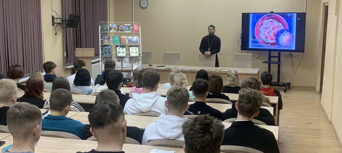 11 декабря клирик храма святых благоверных князей Бориса и Глеба г. Новогрудка иерей Евгений Запольский провел беседу в с учащимися 1-2 курсов Новогрудского колледжа технологий и безопасности на тему: «Аборт и его последствия».