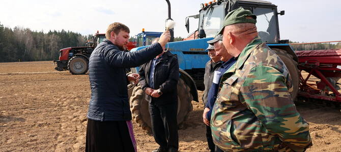 24 марта настоятель строящегося храма в честь святой блаженной Ксении Петербургской г. Новогрудка иерей Илия Герасимук совершил «Молитву на начало сеяния» на поле филиала «Агронеман» ОАО «Лидахлебопродукт».