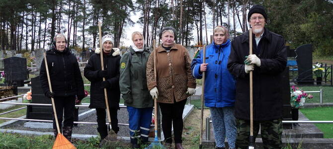 27 октября настоятель храма Святой Живоначальной Троицы аг. Деревная Слонимского благочиния протоиерей Анатолий Ежевский и активные прихожане присоединились к епархиальной акции «У Бога все живы» и навели порядок на приходском кладбище.