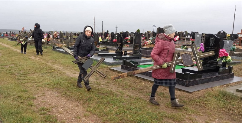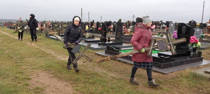 Совместными усилиями были приведены в порядок заброшенные могилы, очищены подходы к ним от сорняков и мусора, убраны и сожжены старые деревянные надгробные кресты.
