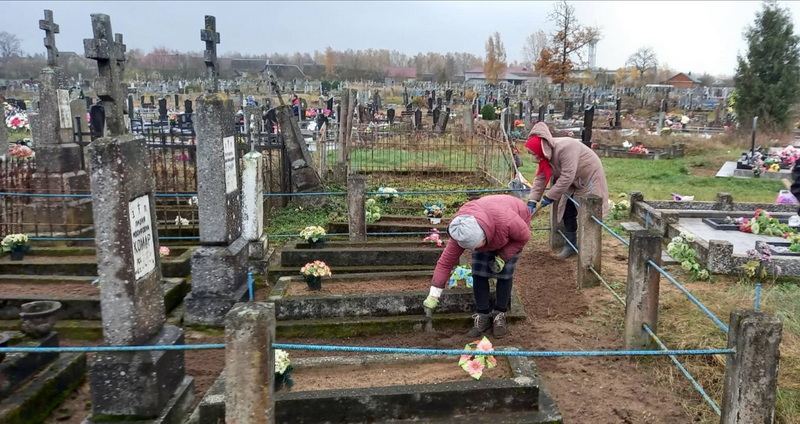 31 октября в рамках епархиальной акции «У Бога все живы» благочинный Дятловского церковного округа иерей Иоанн Кисель и прихожане храма в честь святых новомучеников и исповедников Церкви Русской г. Дятлова потрудились на уборке местного кладбища.