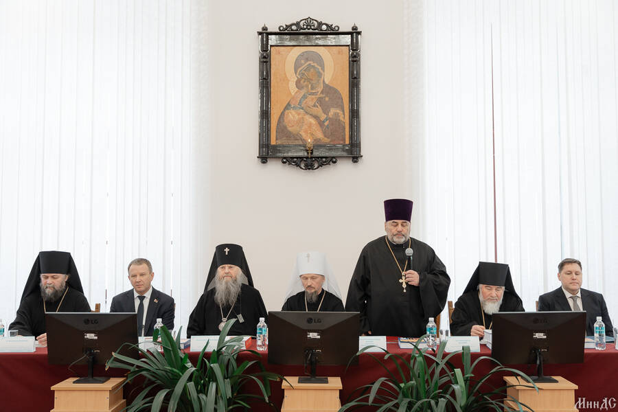 Далее проректор по учебной работе иерей Константин Мачан огласил поздравительные адреса, поступившие в адрес духовной школы.
