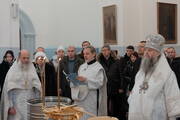 По окончании Божественной литургии был совершен чин Великого освящения воды, после чего Высокопреосвященнейший Владыка обратился к верующим с архипастырским словом.