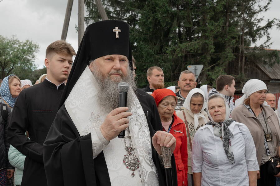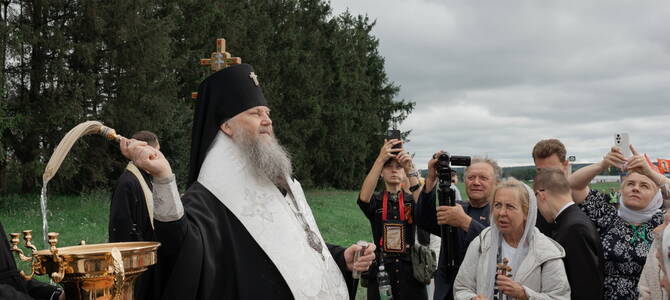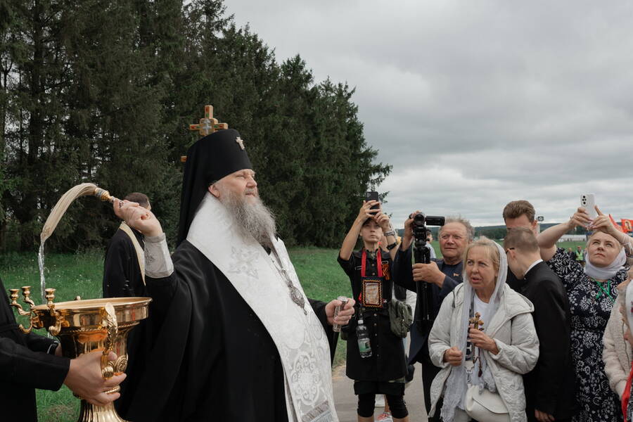 Предваряя молебен архиепископ Гурий обратился к крестоходцем с проповедью.