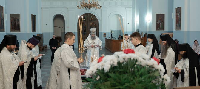 Богослужебные песнопения исполнил мужской хор Минской духовной семинарии под управлением студента 5-го курса МинДС Владислава Калача.