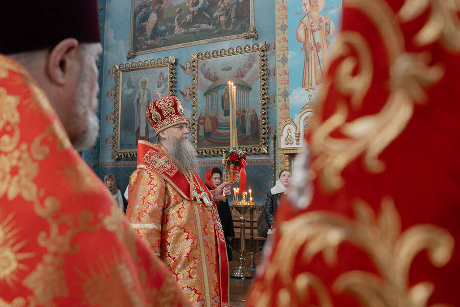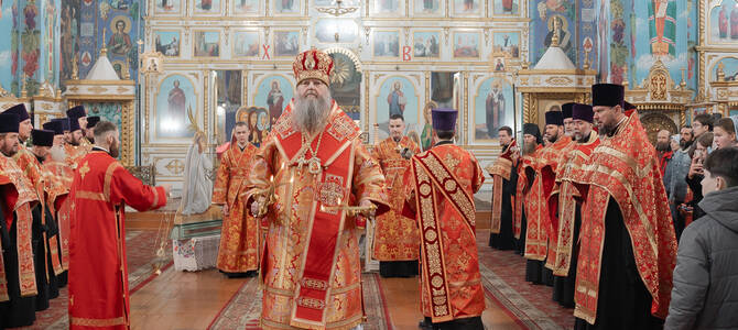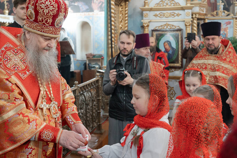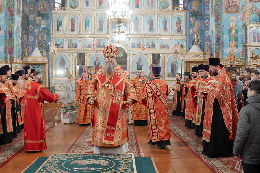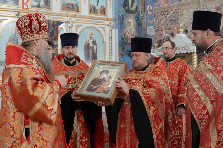 За Богослужением во внимание к усердным трудам во славу Святой Матери-Церкви и ко дню Святой Пасхи клирики епархии были удостоены богослужебно-иерархических церковных наград:
