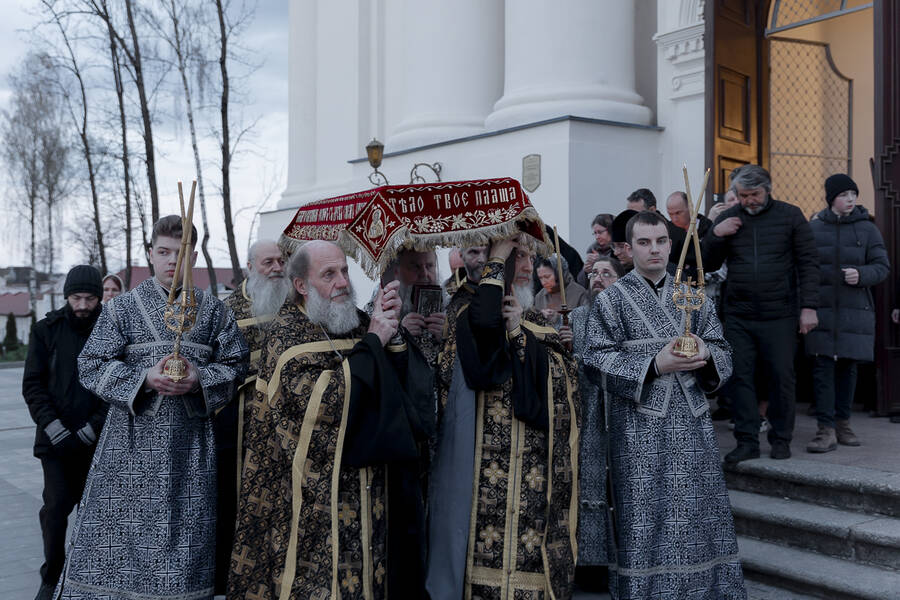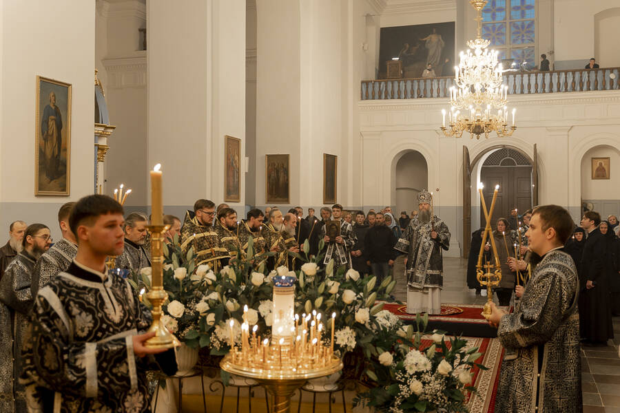 Вечером 10 апреля 2026 года, в канун Великой Субботы, архиепископ Новогрудский и Слонимский Гурий совершил утреню с чином погребения Господа нашего Иисуса Христа в Успенском соборе Жировичского монастыря.