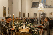 Богослужебные песнопения исполнил мужской хор Минской духовной семинарии под управлением протодиакона Андрея Скробота.