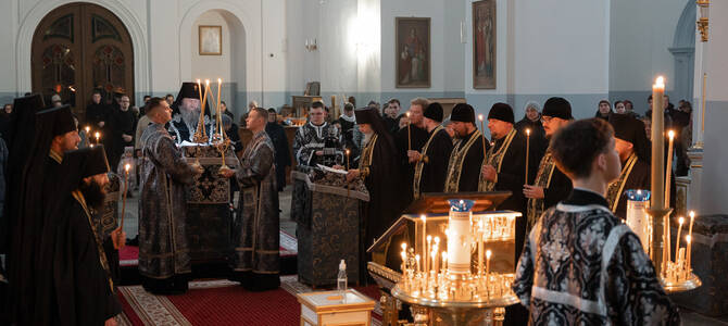 Архиепископ Гурий совершил Великое повечерие с чтением Великого покаянного канона в Успенском соборе Жировичского монастыря