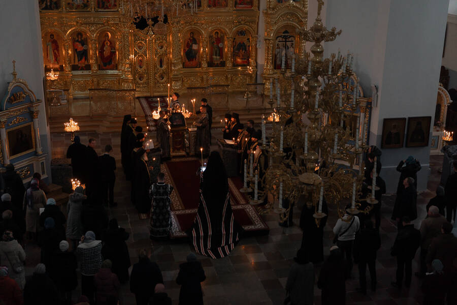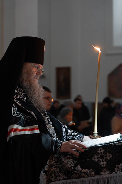 Вечером 23 февраля 2026 года, в понедельник первой седмицы Великого поста, архиепископ Новогрудский и Слонимский Гурий совершил Великое повечерие с чтением Великого покаянного канона преподобного Андрея Критского в Успенском соборе Жировичского монастыря.