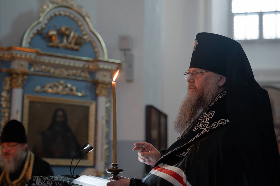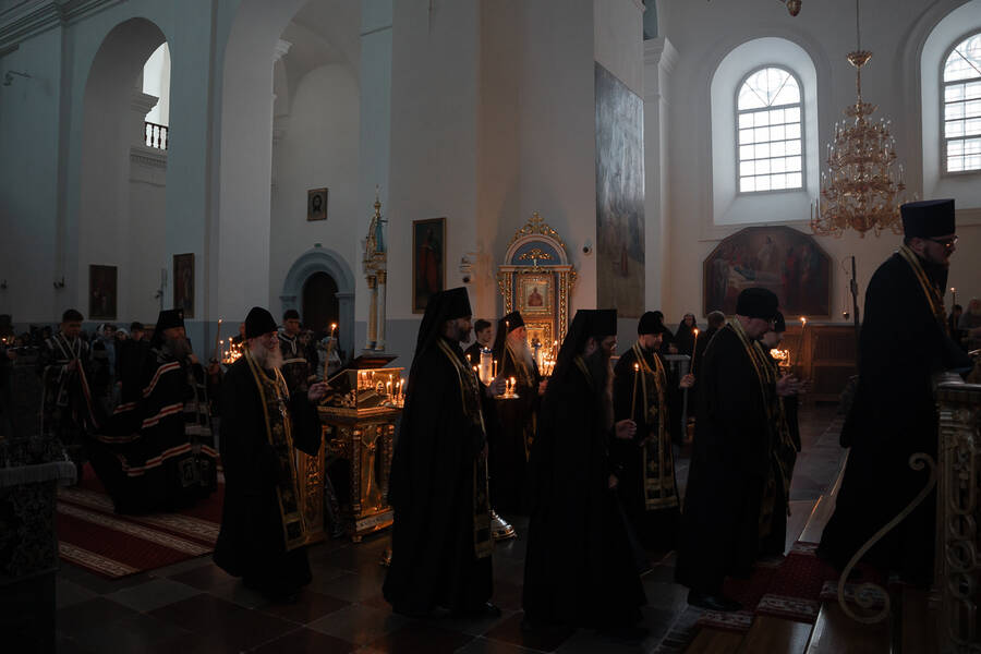 Архиепископ Гурий совершил Великое повечерие с чтением Великого покаянного канона в Успенском соборе Жировичского монастыря