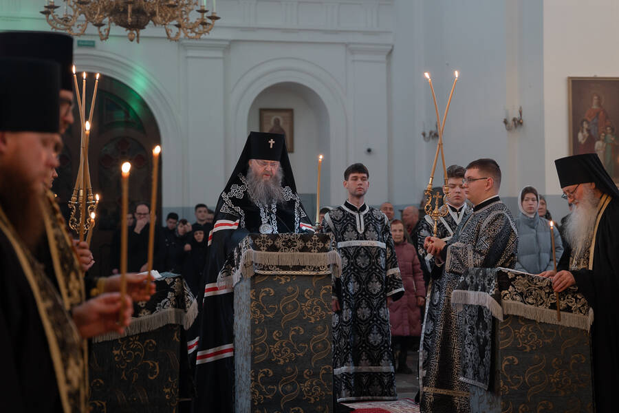 Вечером 26 февраля 2026 года, в четверг первой седмицы Великого поста, архиепископ Новогрудский и Слонимский Гурий совершил Великое повечерие с чтением Великого покаянного канона преподобного Андрея Критского в Успенском соборе Жировичского монастыря.