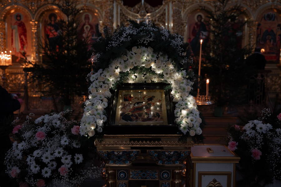 6 января 2026 года, в канун праздника Рождества Господа Бога и Спаса нашего Иисуса Христа, архиепископ Новогрудский и Слонимский Гурий совершил Великое повечерие с утреней в Успенском соборе Жировичского монастыря.