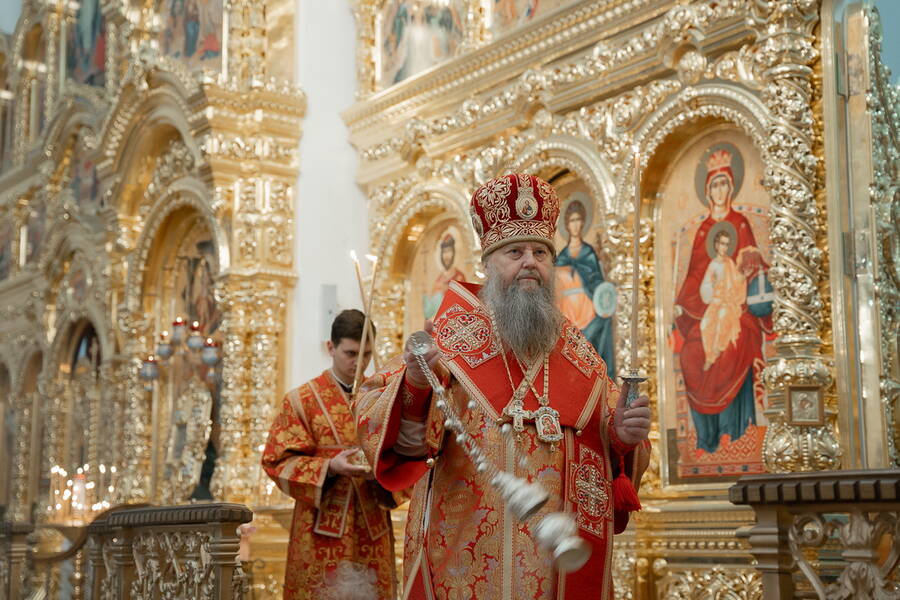 Архиепископ Гурий совершил всенощное бдение в Успенском соборе Жировичского монастыря
