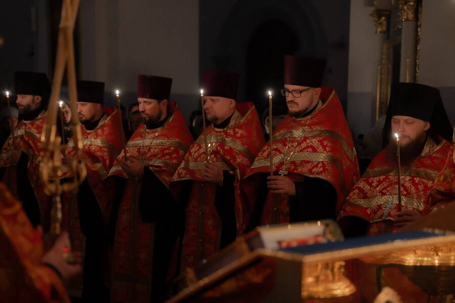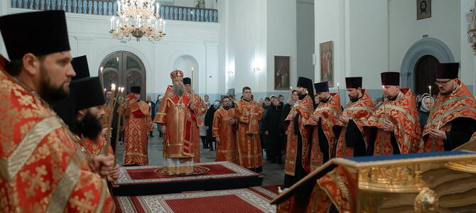 7 февраля 2026 года, в канун Недели о блудном сыне, архиепископ Новогрудский и Слонимский Гурий совершил всенощное бдение в Успенском соборе Жировичского монастыря.