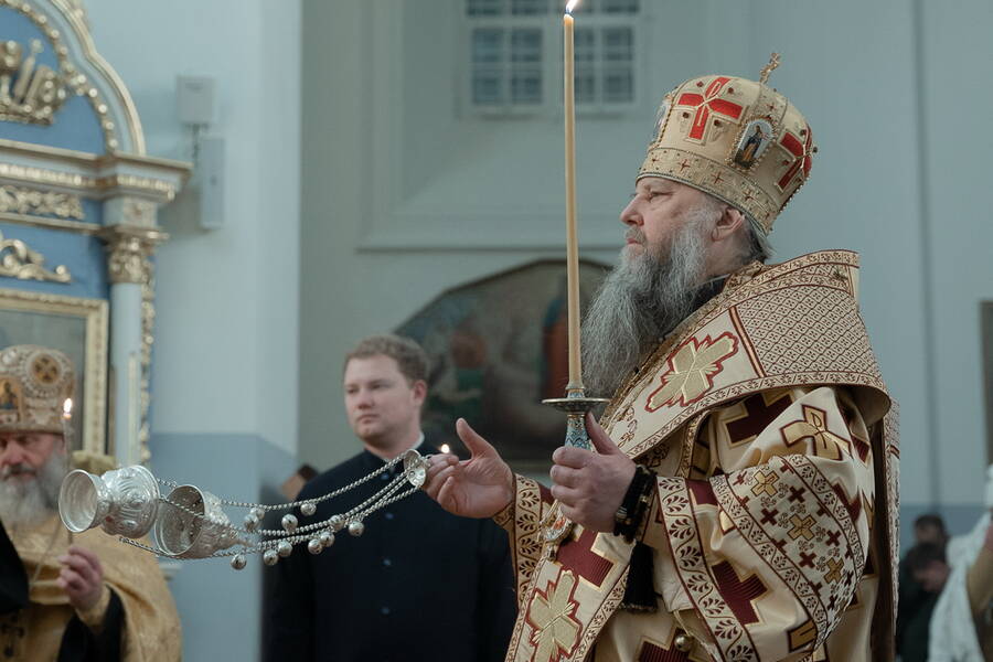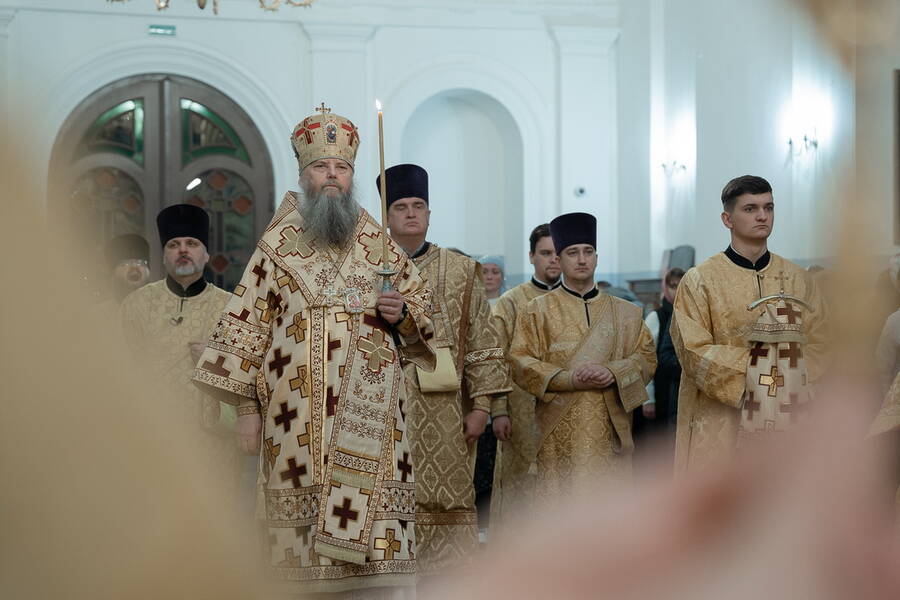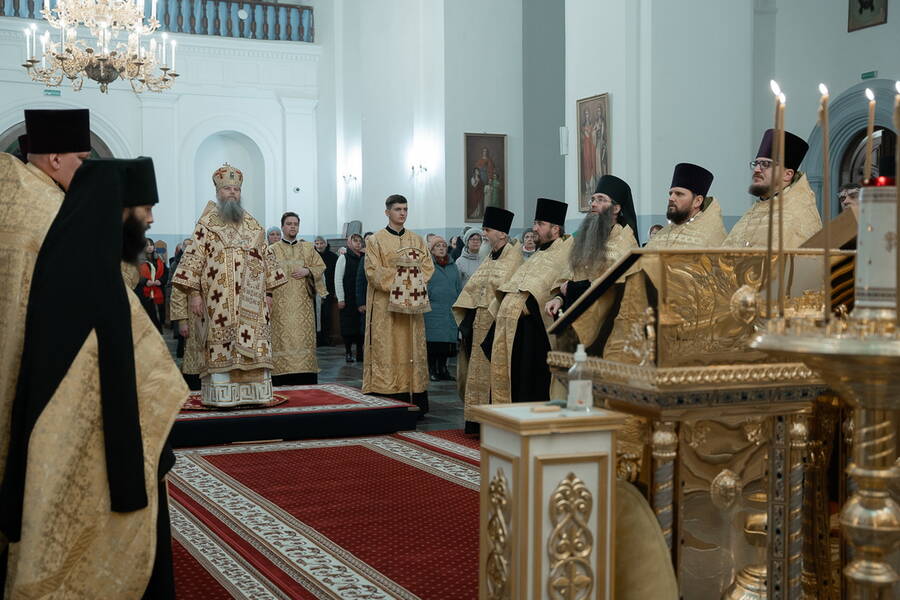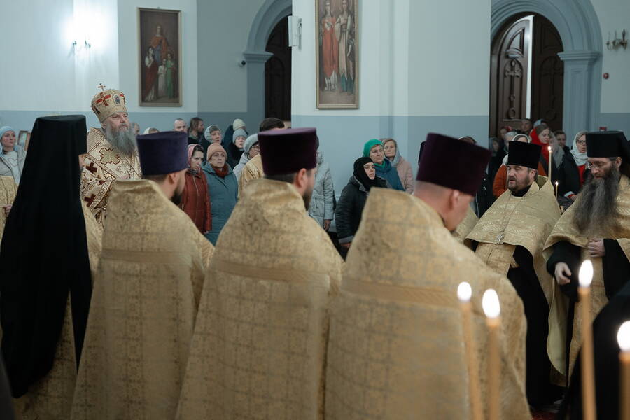 29 ноября 2025 года, в канун Недели 25-й по Пятидесятнице, архиепископ Новогрудский и Слонимский Гурий совершил всенощное бдение в Успенском соборе Жировичского монастыря.