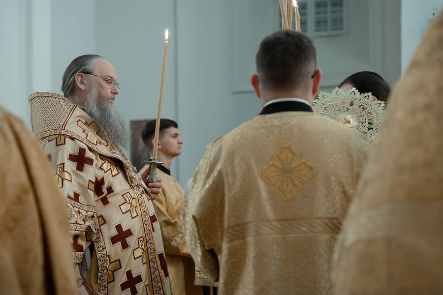 Его Высокопреосвященству сослужили настоятель храма святителя Николая Чудотворца в г. Минске протоиерей Сергий Комлик, братия обители в священном сане, преподаватели Минской духовной семинарии и духовенство Новогрудской епархии.