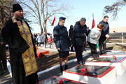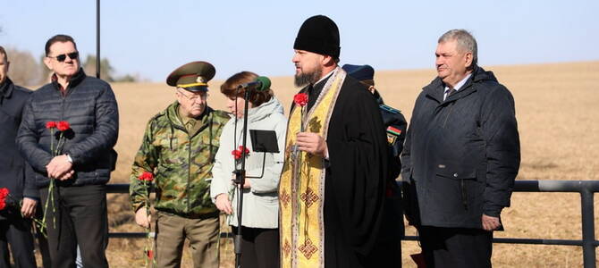 Священник совершил заупокойную литию у братской могилы и обратился к участникам со словом назидания.