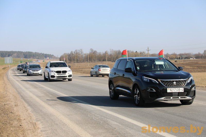 Автоколонна, с закрепленными на автомобилях государственными флагами, проследовала по дорогам города и района. В мероприятии приняли участие руководство района, представители общественности и духовенства, учащиеся, а также секретарь Новогрудского епархиального управления протоиерей Димитрий Сёмуха, настоятель Свято-Троицкого собора г. Слонима.