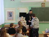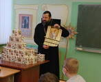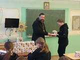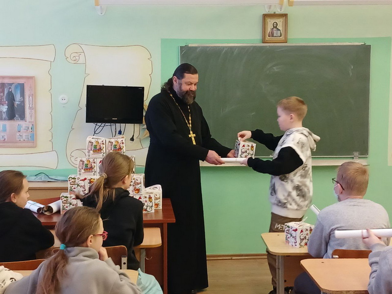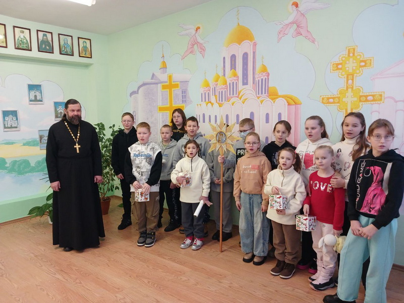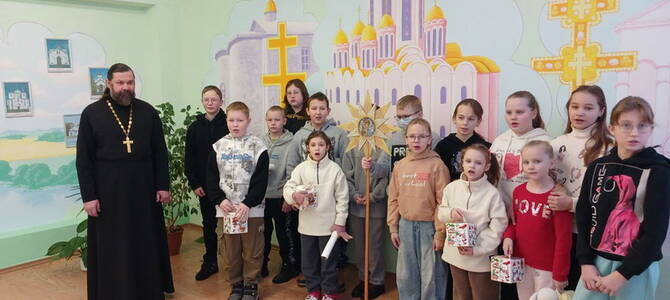 Также священник поздравил детей с Рождеством Христовым, вручил подарки, а ребята, в свою очередь, исполнили тропарь праздника.