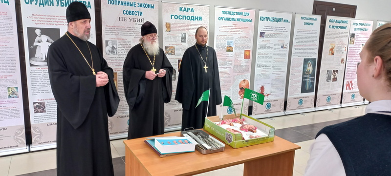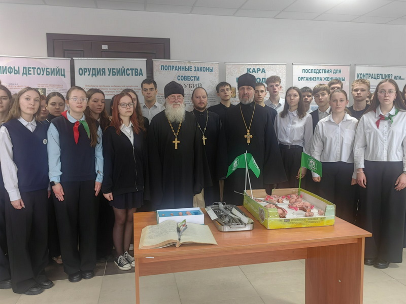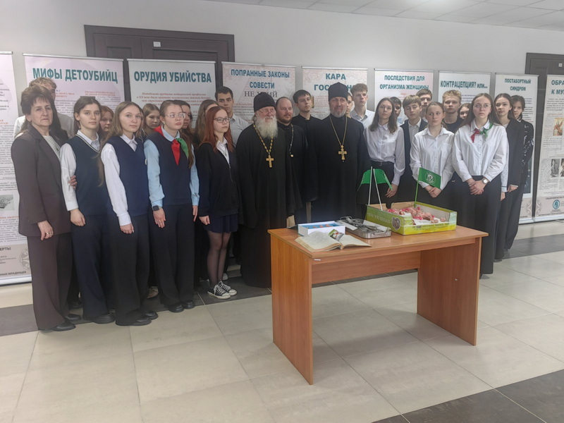 Для учащихся была представлена экспозиция «Спасай взятых на смерть!», после чего состоялась беседа на важные темы: нравственное здоровье семьи, духовные ценности, значимость рождения и воспитания детей в духе православной традиции. В ходе диалога особое внимание было уделено психологическим последствиям абортов и важности взаимной поддержки и ответственности в семейной жизни.