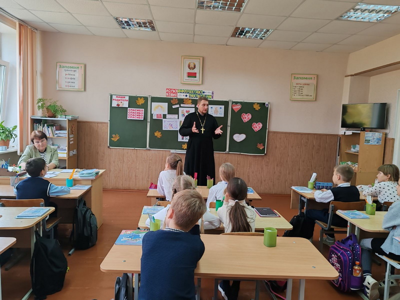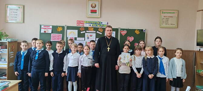 20 октября настоятель храма святых апостолов Петра и Павла в г. п. Кореличи иерей Игорь Пирог побывал в средней школе № 1 и провел беседу о семейных ценностях с учащимися 4 «А» класса.
