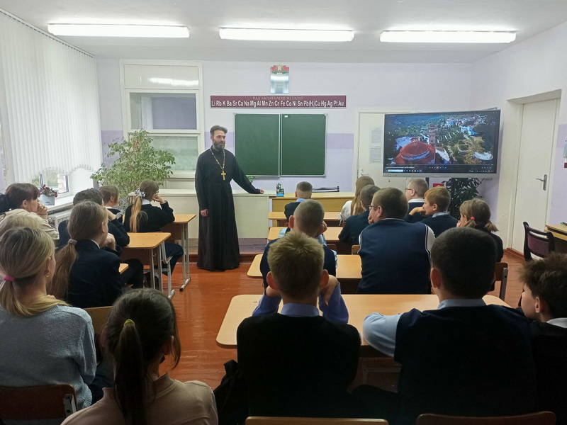 30 сентября настоятель храма святой великомученицы Варвары аг. Райца Кореличского благочиния иерей Алексей Шишкир беседовал с учащимся 7-8 классов ГУО «Райцевская средняя школа им. В.А. Головача».