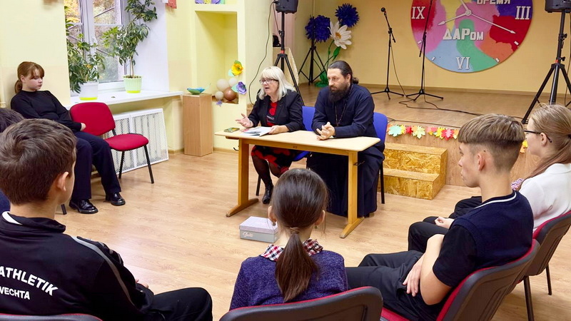 Тема разговора — зависимость, сквернословие и внутренняя гармония личности. Священник пригласил подростков к открытому диалогу о том, что приносит истинное счастье.