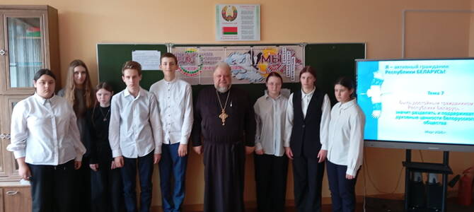 31 марта настоятель храма святого архангела Михаила села Цирин Кореличского благочиния протоиерей Олег Сушко посетил Циринскую базовую школу, где принял участие в информационно-образовательном проекте «Школа Активного Гражданина».