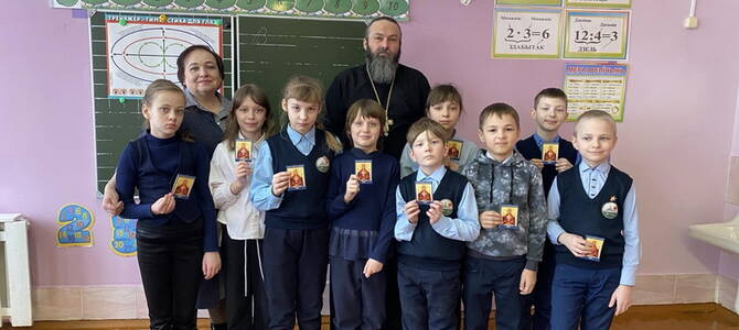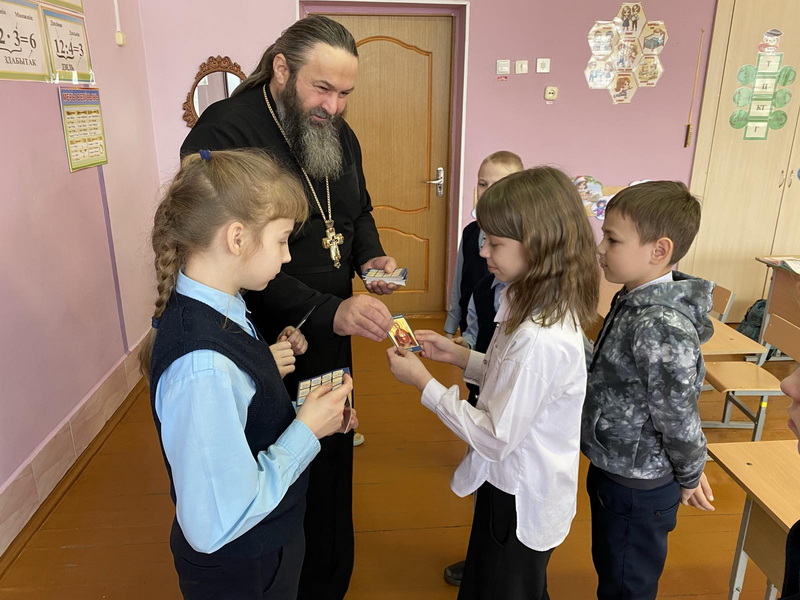 После беседы священник вручил детям православные календарики.