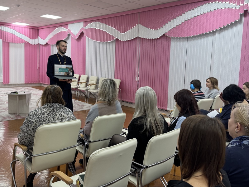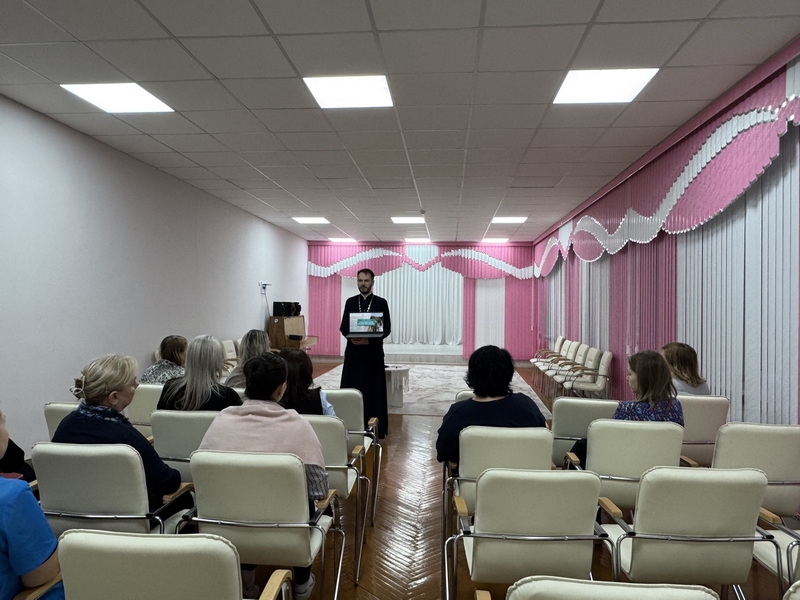 Священник побеседовал с коллективами на тему: «Счастливая семья — сильное государство», представил статистику и обсудил с присутствующими проблемные семейные вопросы.