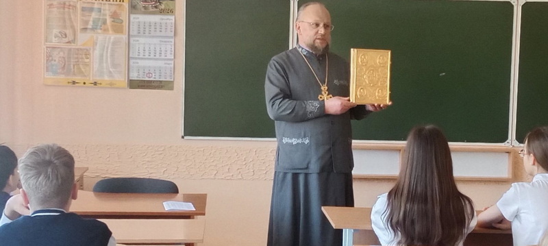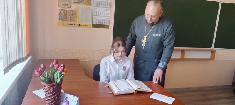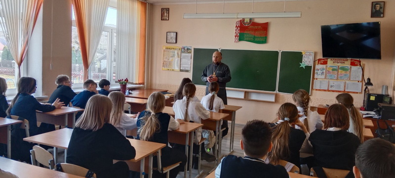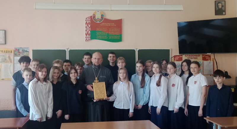 18 марта настоятель Свято-Никольского кафедрального собора г. Новогрудка протоиерей Анатолий Герасимук в рамках Недели православной книги провел беседу с учащимися 7 классов городской средней школы №5.