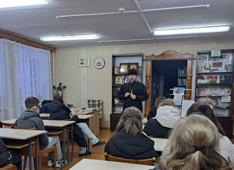 15 января настоятель Свято-Троицкого храма г.п. Мир Кореличского благочиния иерей Феодор Лукашевич посетил Мирский государственный колледж, где провел беседу с учащимися первого курса на тему евангельской истории — Рождества Христова и Рождественских святок.