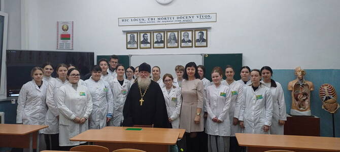 26 ноября настоятель храма мученика Иоанна Воина г. Слонима иерей Петр Ткаченко в рамках адаптационного курса провел беседу с первокурсниками Слонимского государственного медицинского колледжа.