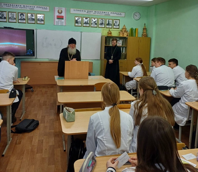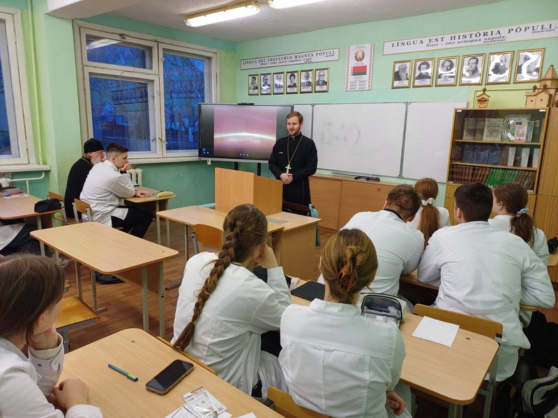 15 декабря в рамках адаптационного курса состоялась встреча первокурсников Слонимского государственного медицинского колледжа с руководителем отдела по вопросам семьи, защиты материнства и детства иереем Петром Ткаченко и клириком Спасо-Преображенского собора иереем Павлом Моряковым.