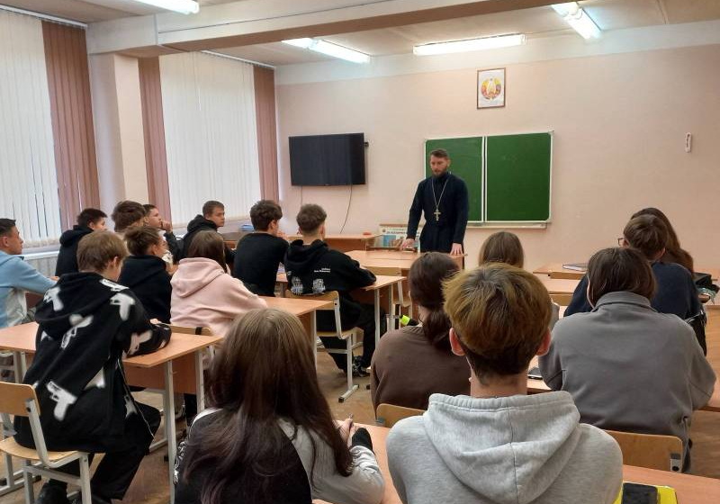 3 декабря клирик храма святых благоверных князей Бориса и Глеба г. Новогрудка иерей Евгений Запольский в рамках Недели борьбы со СПИДом побеседовал с учащимися 3 курса Новогрудского колледжа технологий и безопасности.