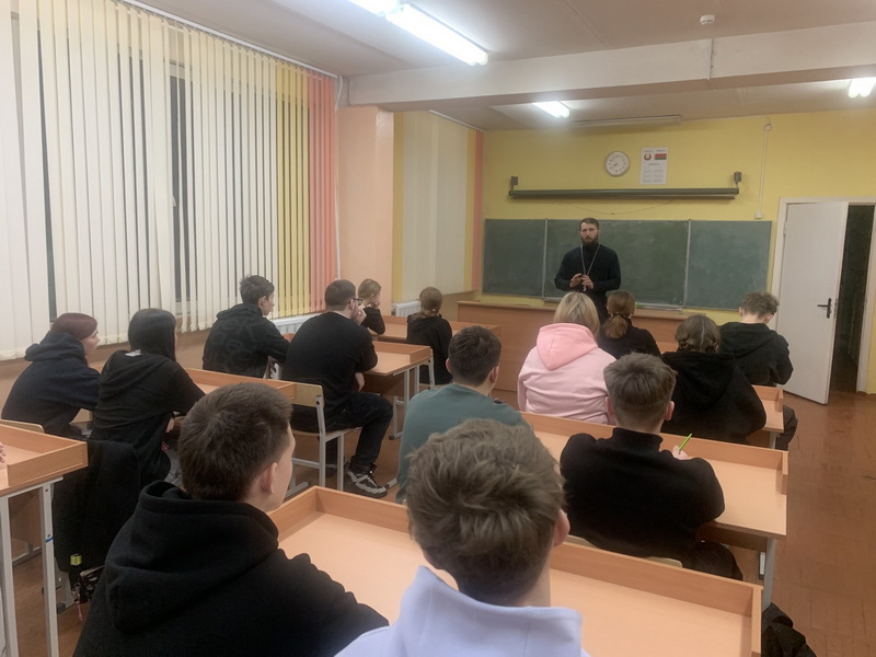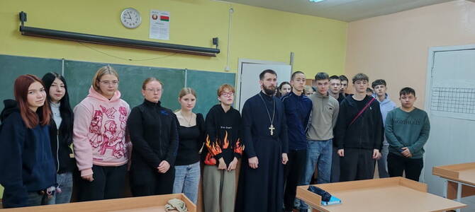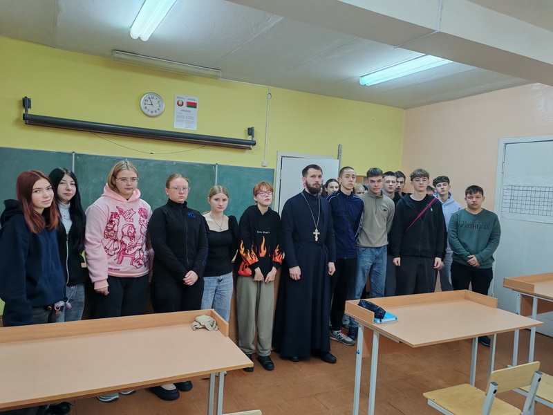 15 января настоятель храма святых апостолов Петра и Павла аг. Валевка Новогрудского района иерей Евгений Запольский провел беседу с учащимися 1 курса Новогрудского колледжа технологий и безопасности на тему : «Семья. Ценности. Традиции».