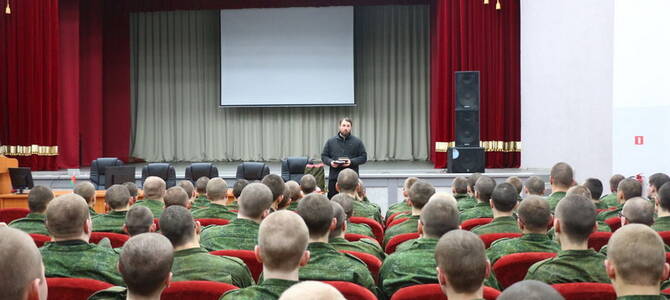 16 ноября руководитель епархиального отдела по взаимодействию с Вооруженными силами и правоохранительными органами иерей Олег Пачковский провел беседу с военнослужащими 11-ой отдельной механизированной бригады г. Слонима на тему: «История, просвещение и нравственность – разговор об исторической правде и духовной справедливости».