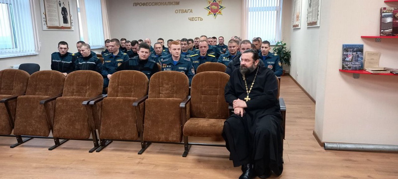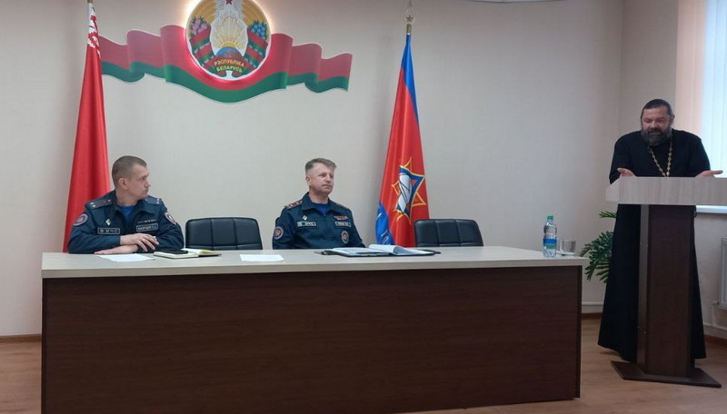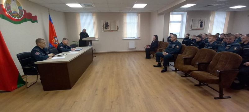 Беседа священника с личным составом пожарной части Дятловского РОЧС