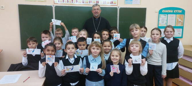 17 ноября в Большешиловичской базовой школе Слонимского района состоялась встреча учащихся 1-4 классов с настоятелем местного храма в честь Казанской иконы Божией Матери протоиереем Вадимом Петлицким.