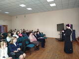 Священнослужитель рассказал учащимся и педагогам о смысле и происхождении православного праздника Крещения Господня, передав свидетельства четырех Евангелий о Богоявлении.