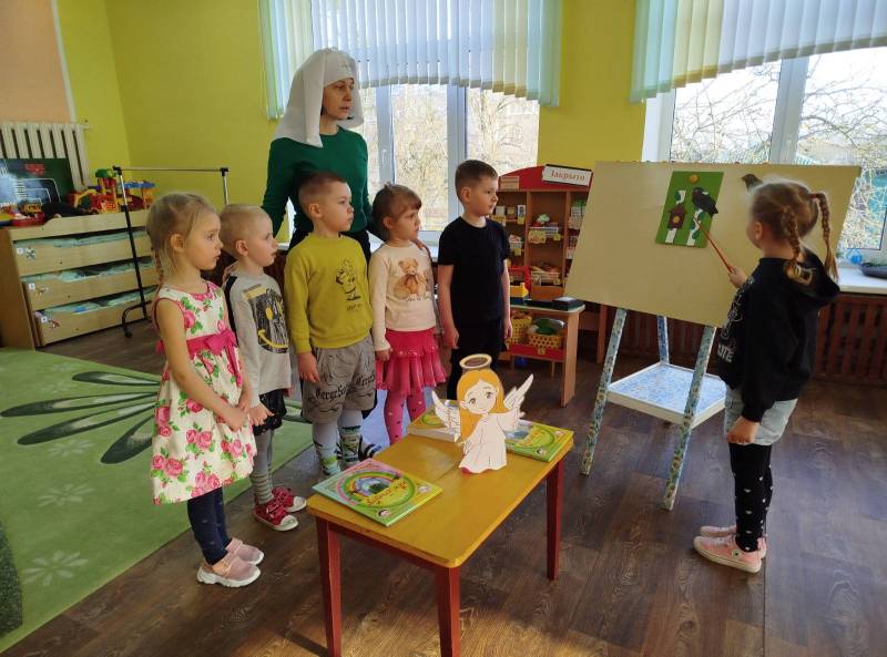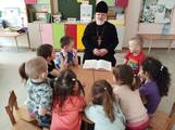 16-20 марта клирик Дятловского благочиния протоиерей Николай Пинчук (аг. Хвиневичи), а также воспитатели дошкольного образования О.В. Шевко (г. Дятлово), Н.И. Толстейко (г.п. Новоельня) и А.И. Шашко (аг. Гезгалы) провели беседы в рамках занятий кружка «Уроки Доброты» с воспитанниками детских садов Дятловского района на темы: «Забота о животном мире», «Правила поведения в храме» и «Сила Животворящего Креста Господня».