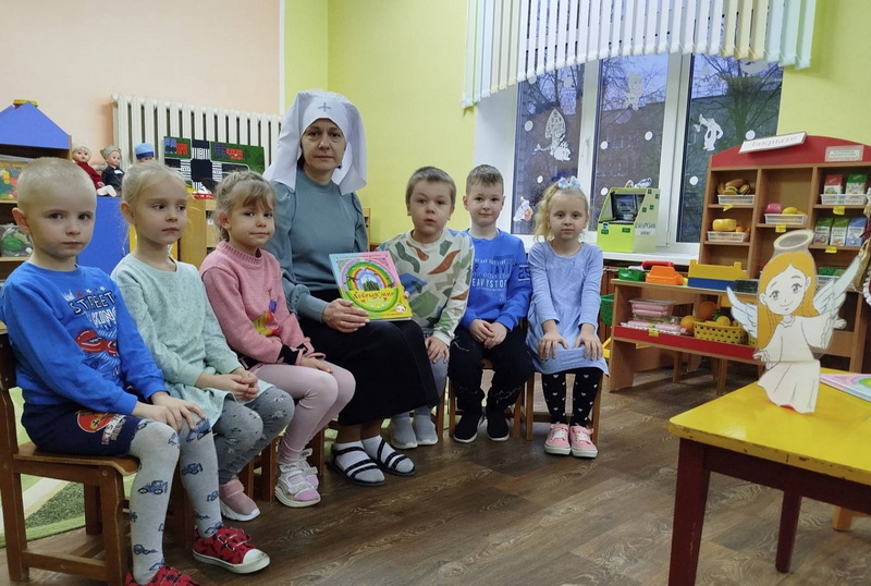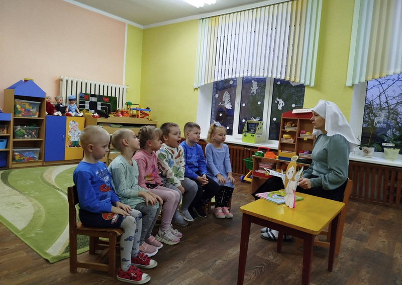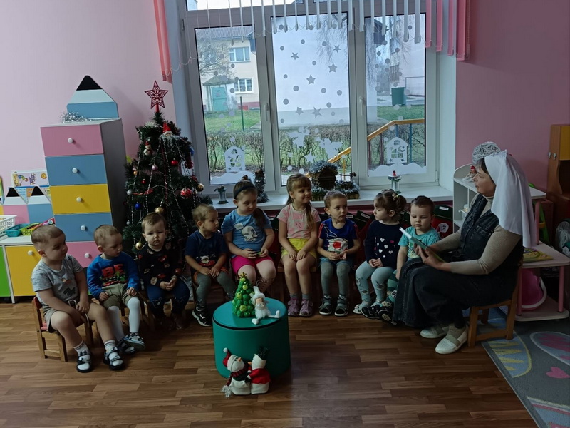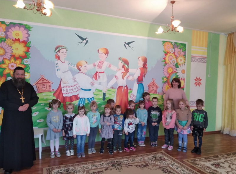 15-19 декабря клирик Дятловского благочиния иерей Сергий Антошков (аг. Дворец), а также воспитатели дошкольного образования О.В. Шевко (г. Дятлово), Н.С. Войтеховская (г. Дятлово) и Е.А. Гаврош (г.п. Гезгалы) провели в рамках занятий кружка «Уроки Доброты» беседы с воспитанниками детских садов Дятловского района.